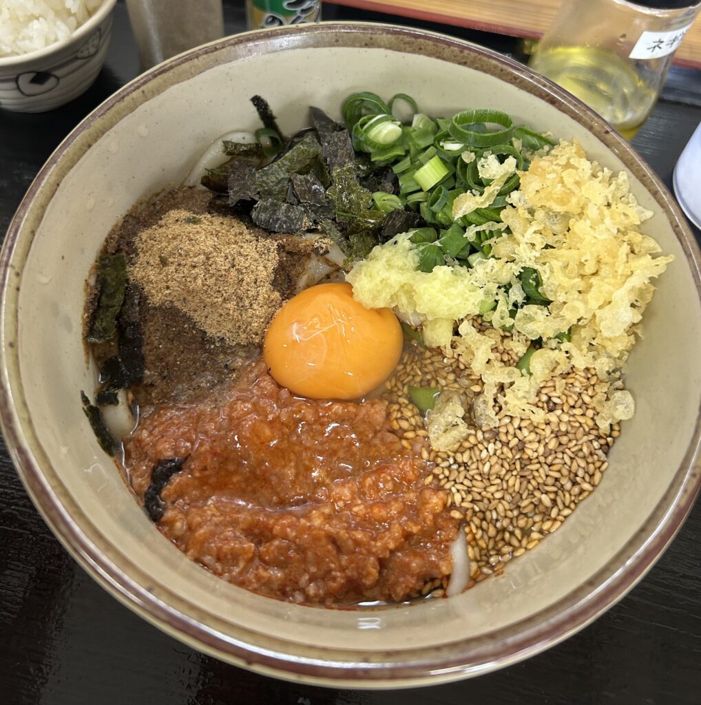 観音寺市「うどん処 麺紡」限定・麺紡スペシャル実食|ピリ辛肉味噌×卵黄×追い飯が最高