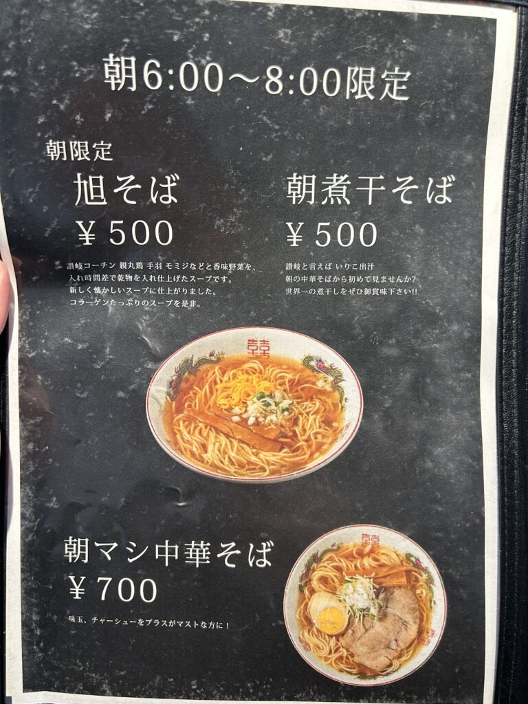 といった、朝専用のラーメンが用意されています。