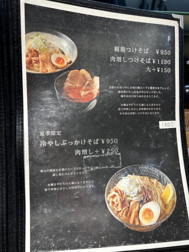 今回注文したのは「親鶏つけそば」。