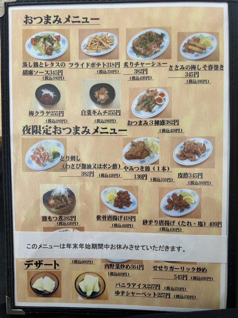 メニュー(2025/12/30時点)