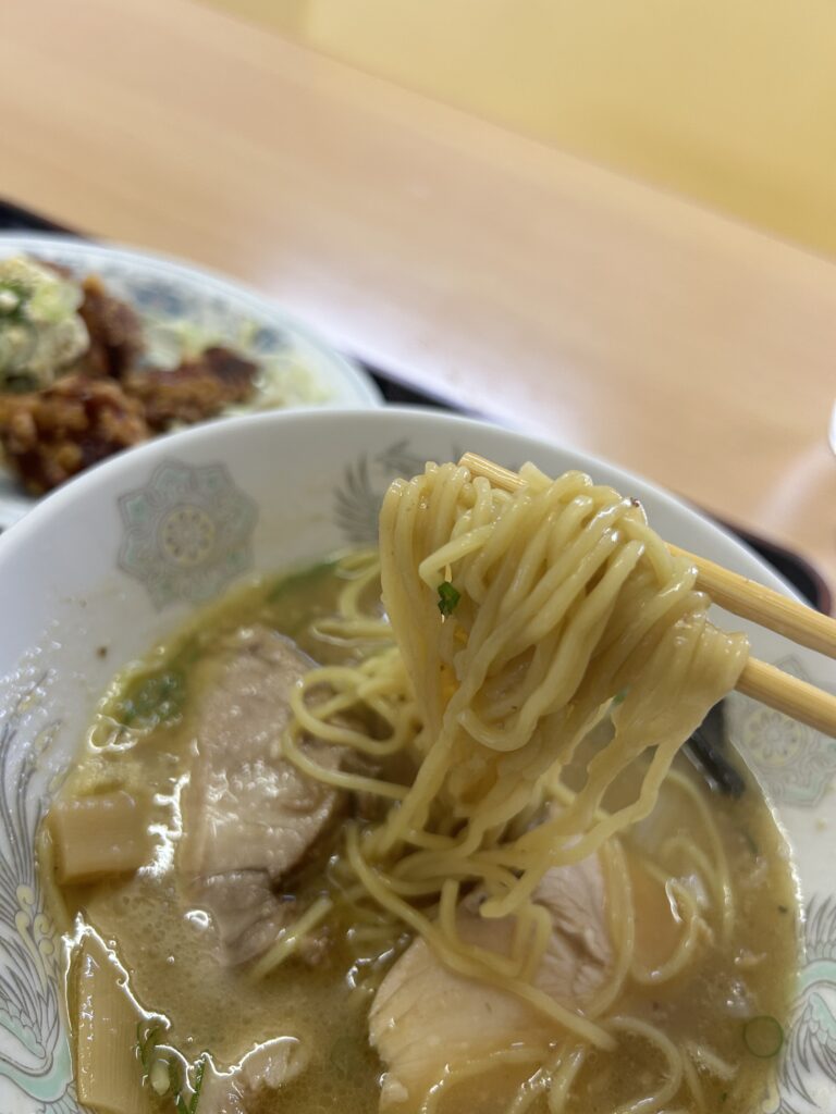 麺も程よい太さでスープとの絡みがよく、テンポよく箸が進みます。