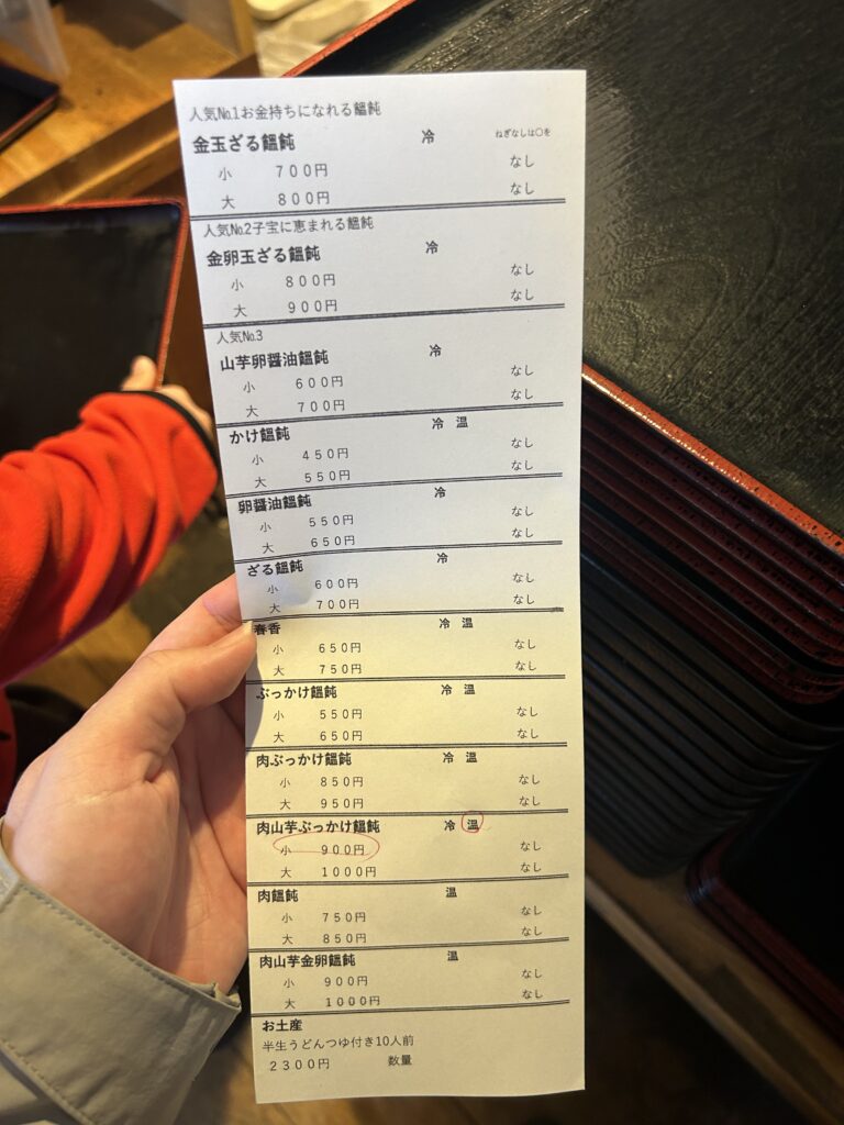・肉山芋ぶっかけ饂飩(温・小) 900円