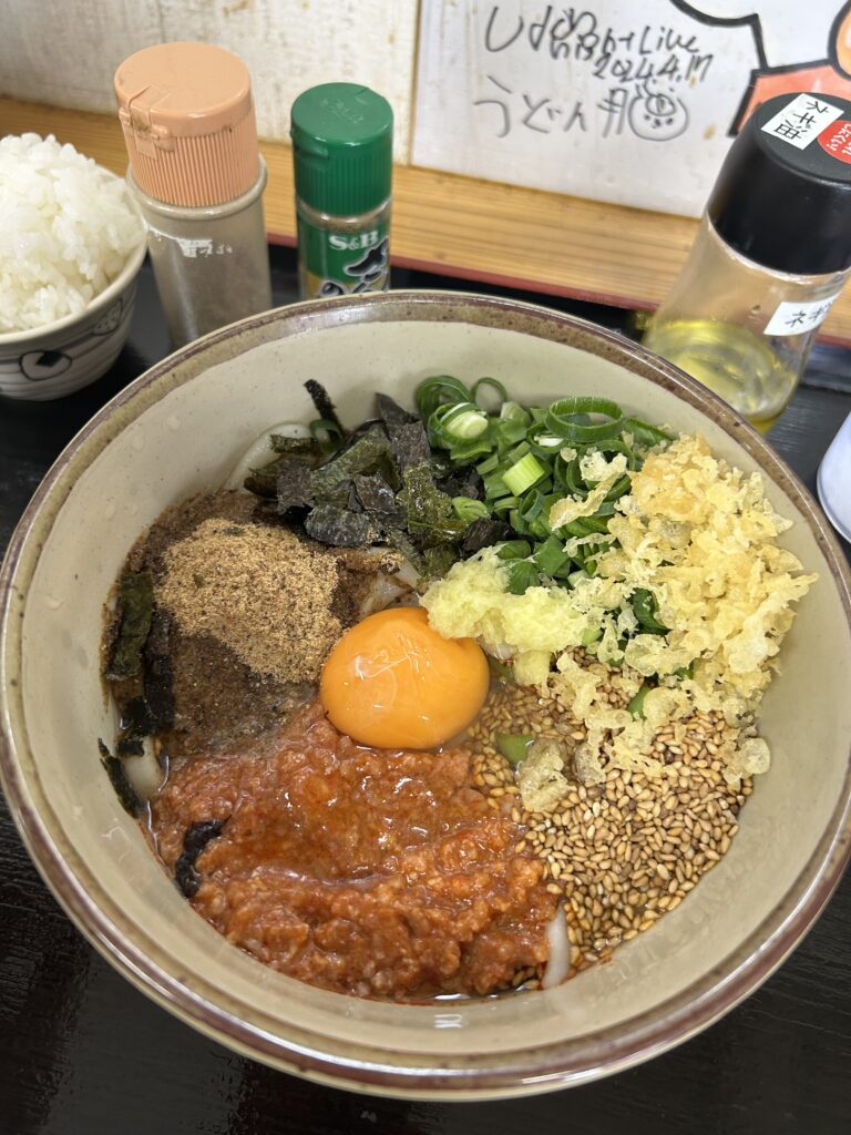 いわゆる“ジャンク系まぜうどん”だが、土台の麺が強いから成立している一杯。