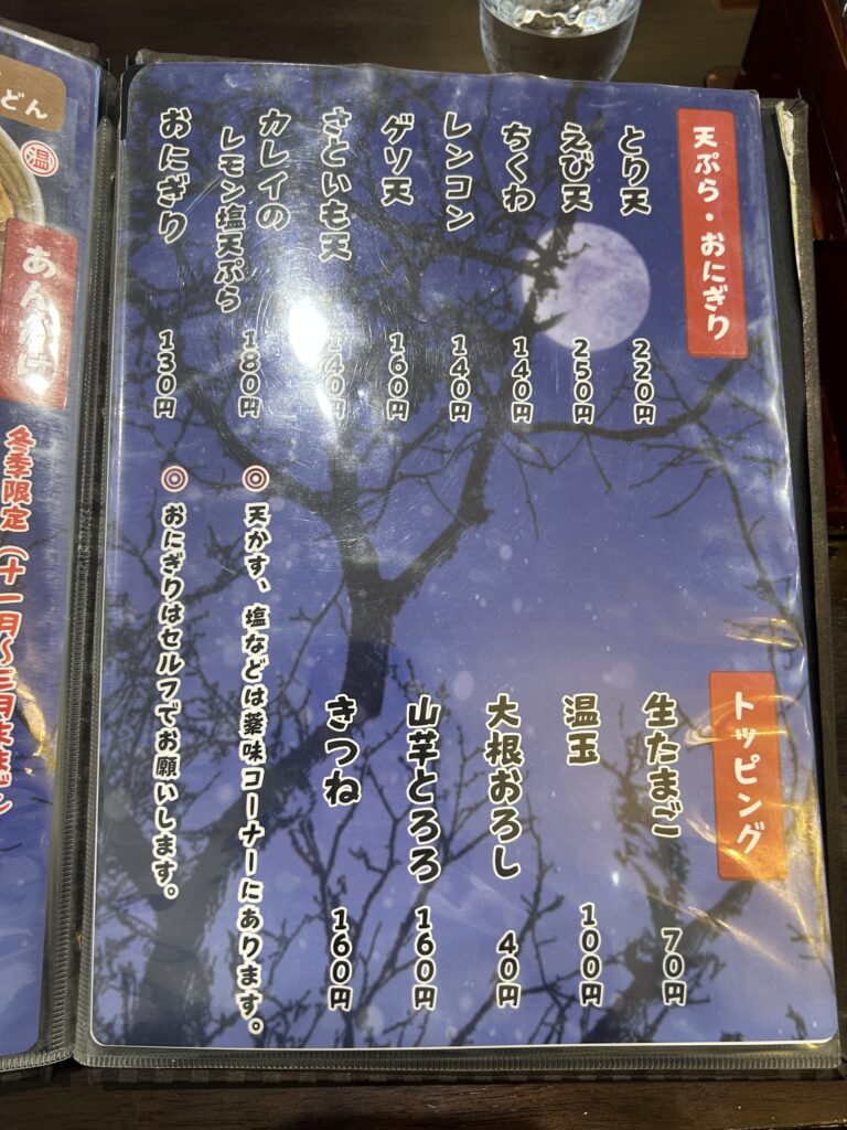 店内は落ち着いた空気感で、地元のお客さんが多い印象。観光客向けというより、普段使いされている地域密着型のうどん店といった雰囲気でした。