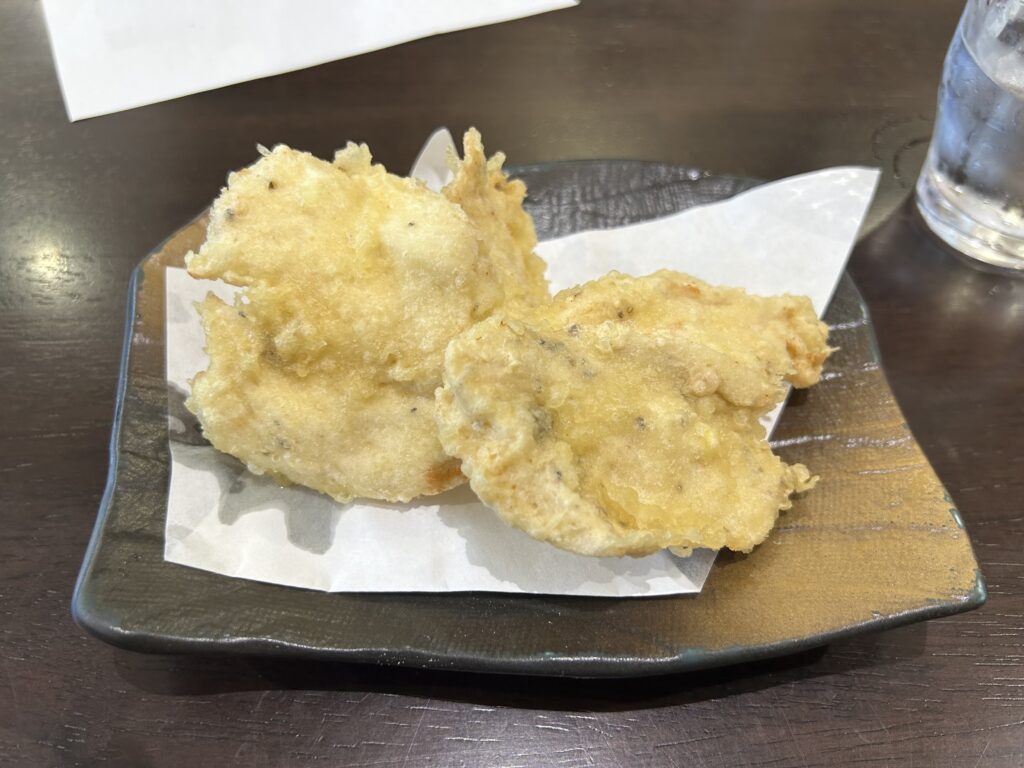 2個入りなので一人で食べても満足感のある量ですが、誰かと一緒に来店した場合はシェアしやすいのも嬉しいポイント。価格も手頃なので、うどんと一緒に頼むサイドメニューとしてはかなりバランスが良いと思います。