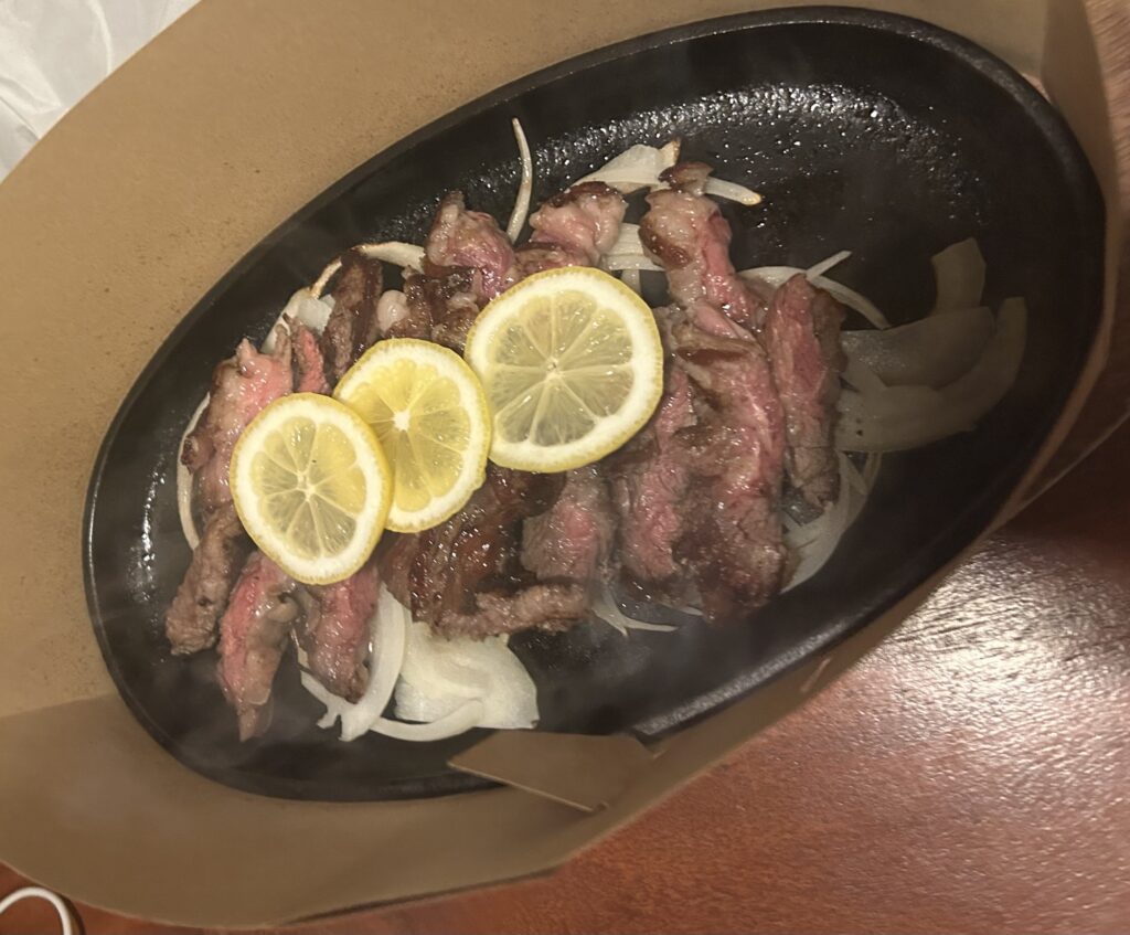 サイコロステーキは食べやすいサイズながらしっかりジューシーで、ガーリックライスとの相性も抜群。シンプルに“満足度が高い”と感じるメニューです。