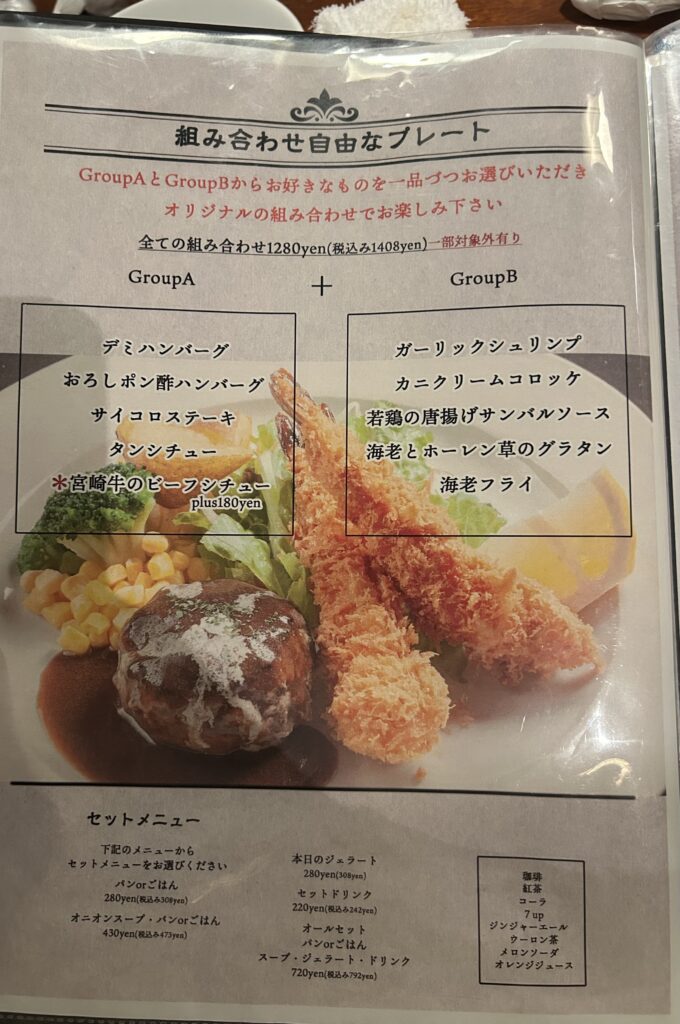 ・組み合わせプレート(デミハンバーグ+海老フライ)