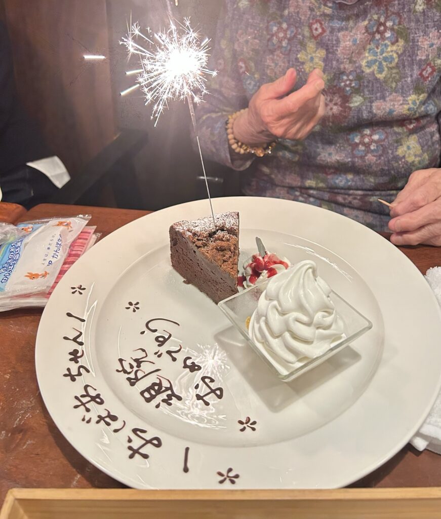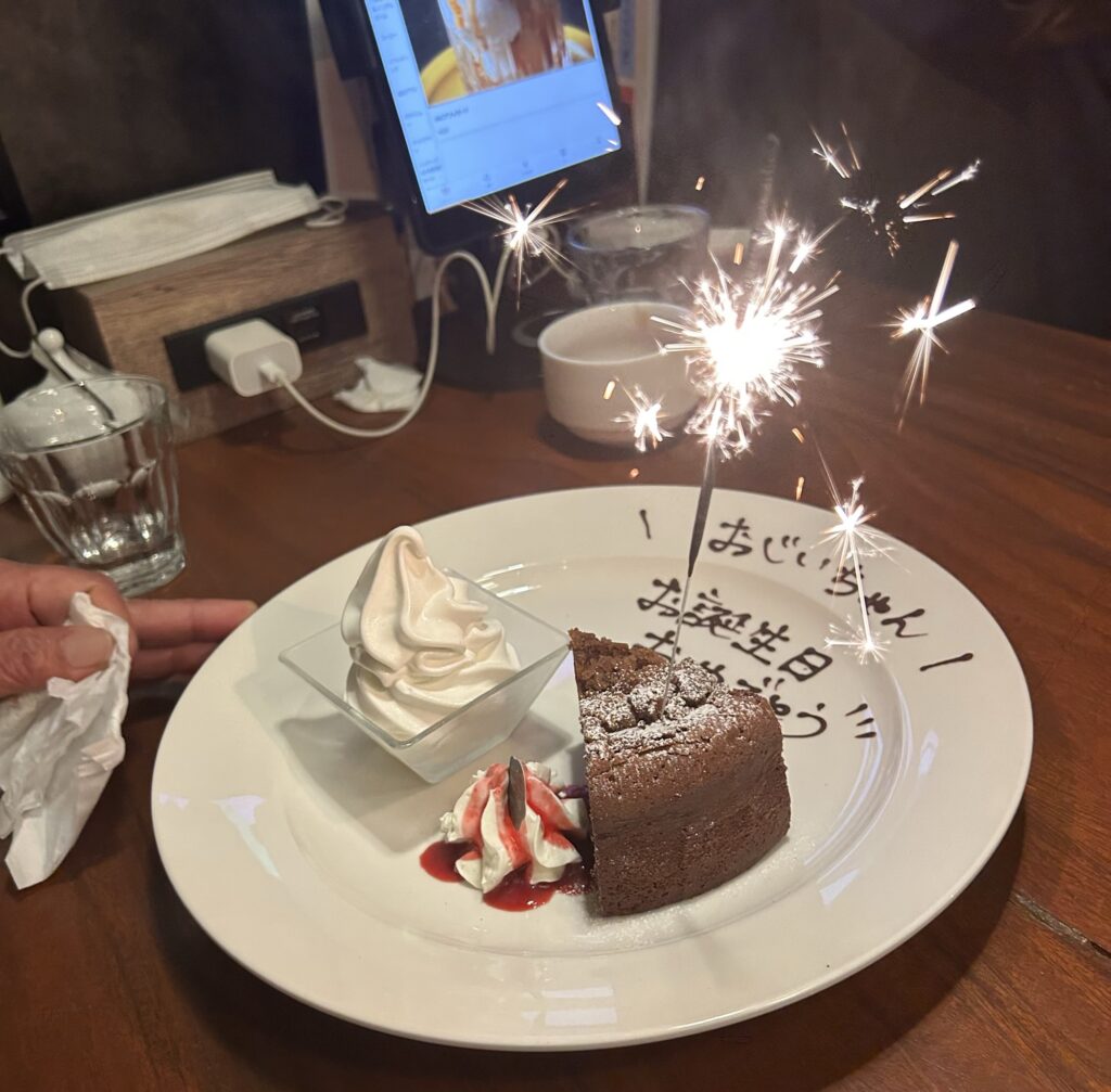 この日は予約をして個室に入り、おばあちゃんの退院とおじいちゃんの誕生日を祝いました。