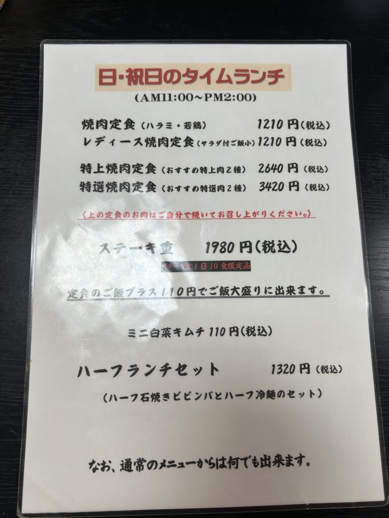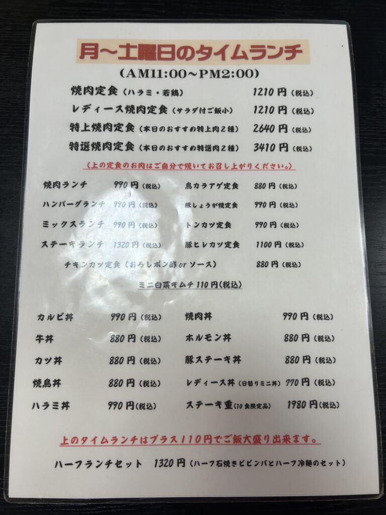 地元では焼肉店として知られているお店ですが、実はランチメニューがかなり充実しているのも魅力の一つです。
